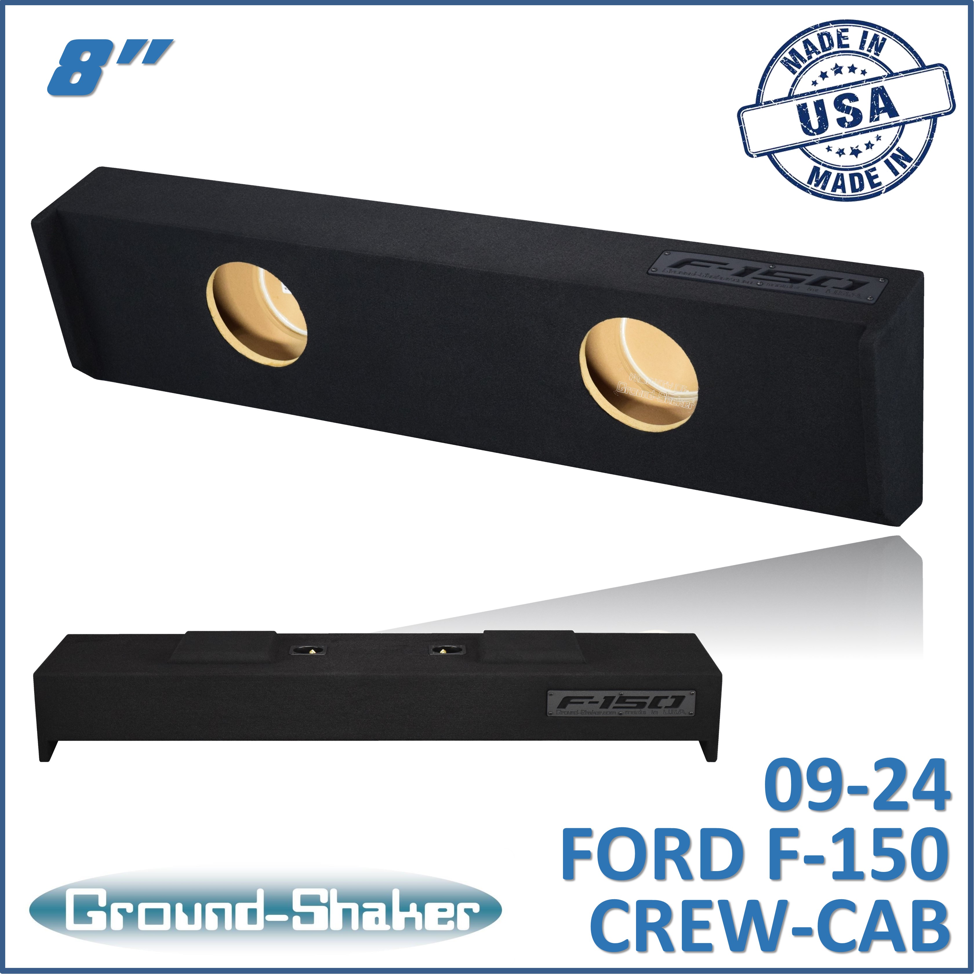 Black 8" Dual Sealed Sub Box, Fits 09-24 Ford F-150 Crew-Cab