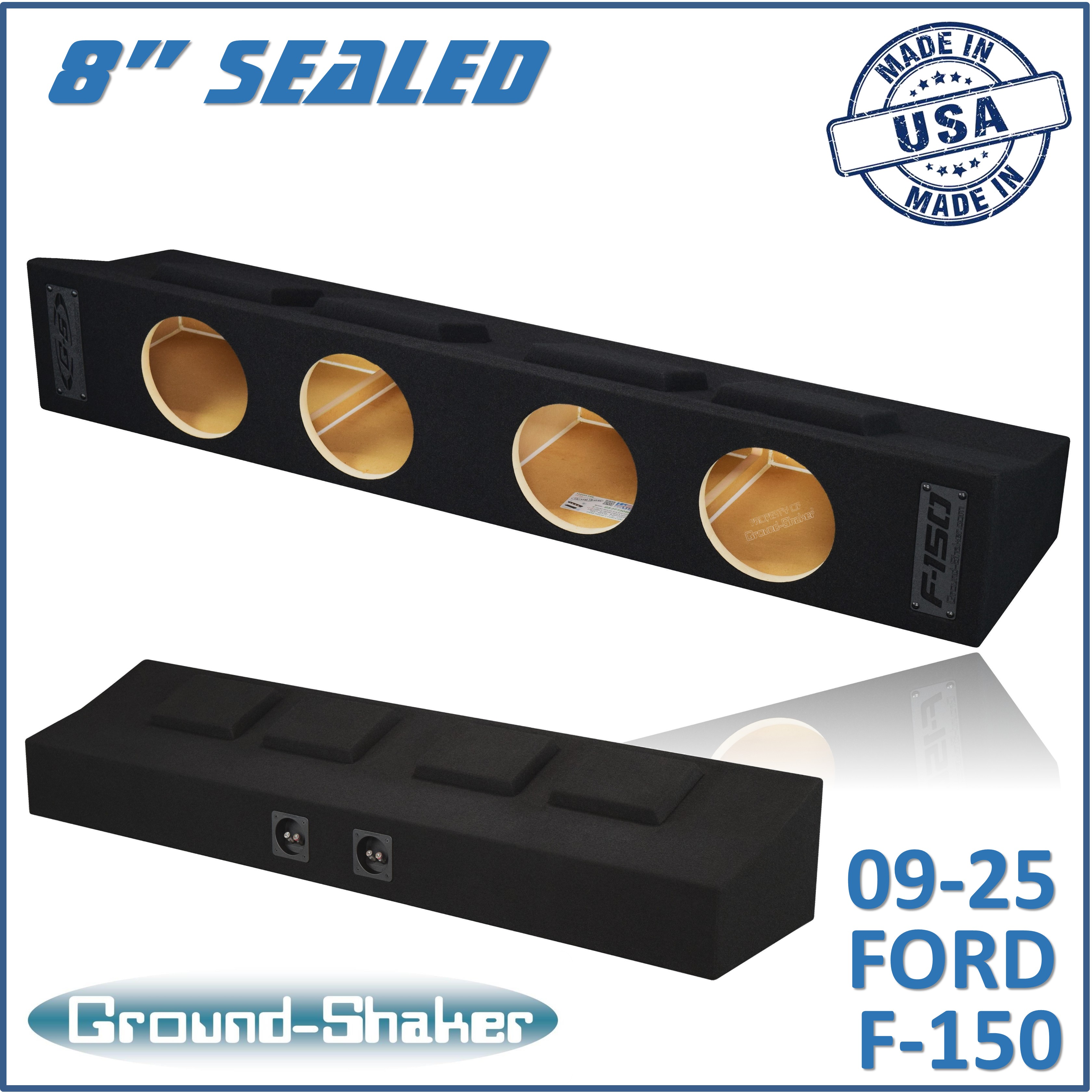 Black Quad 8" Sealed Sub Box, Fits 09-25 Ford F-150 Crew-Cab