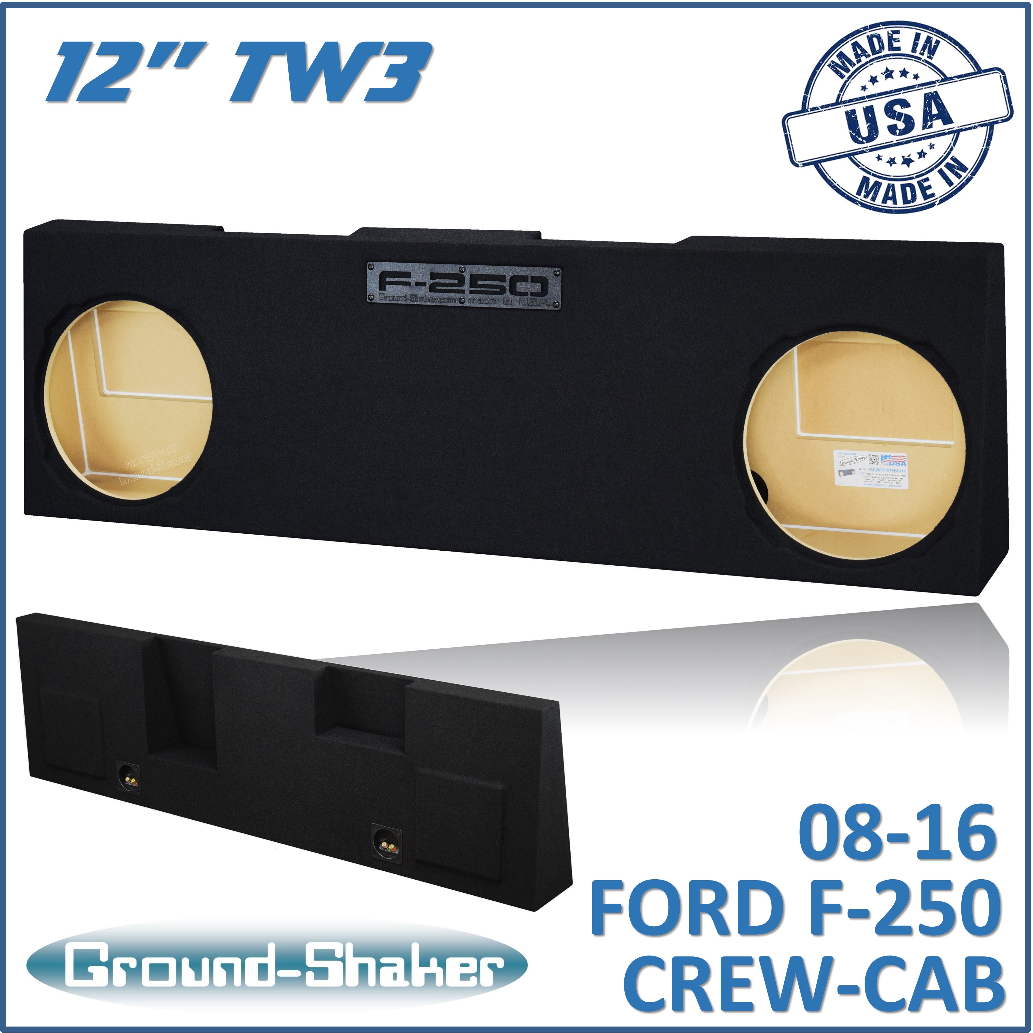 Black 12" Dual Sealed Tw3 Sub Box, Fits 08-16 Ford F-250 Crew-Cab