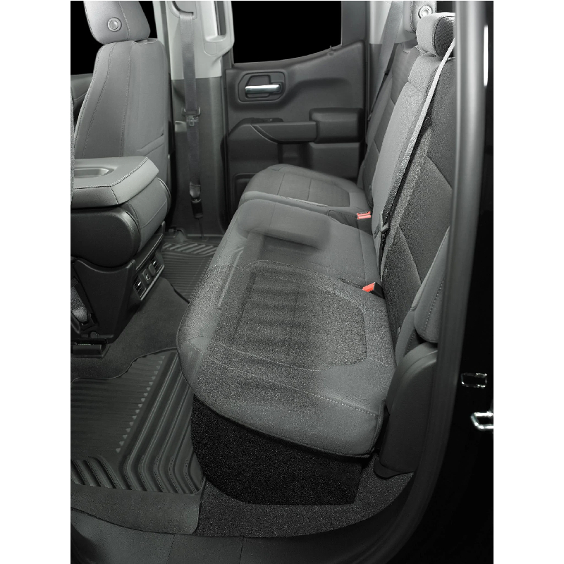 Our Stealthbox® for the Double Cab version features an all-fiberglass, sealed enclosure design that mounts under the rear seat and requires no holes to be drilled for installation. Outfitted with a pair of our revolutionary 10TW3 thin-line subwoofers, this Stealthbox® fills your truck with stunning amounts of JL Audio bass, with no intrusion on cab space. We even left a recess on the Stealthbox's top for amplifier installation, if desired.