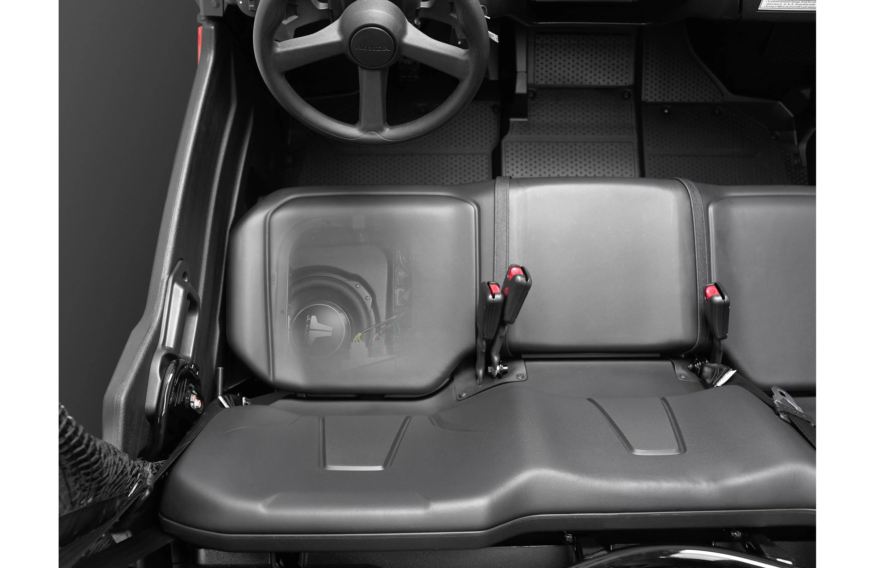 This space-saving Stealthbox houses a 10-inch, TW3 driver with a rugged, weatherproof coating and includes all the mounting hardware needed for a secure, great sounding installation. It installs beneath driver seat. This is made for 2015-up Honda Pioneer 1000.