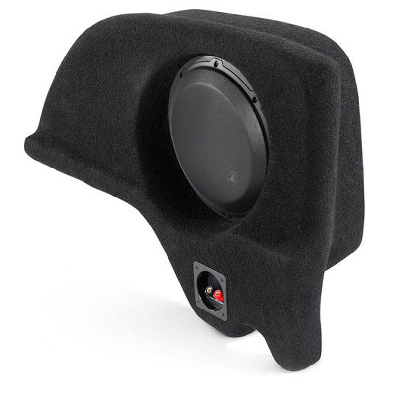 The Stealthbox® replaces the OEM "subwoofer" with a sealed enclosure housing a potent 10-inch JL Audio subwoofer driver. The enclosure installs in the passenger side rear corner of the cargo area without interfering with under-floor storage or cargo tie-dow fixtures, while the included stell mesh grille keeps the driver safe from cargo-related mishaps.